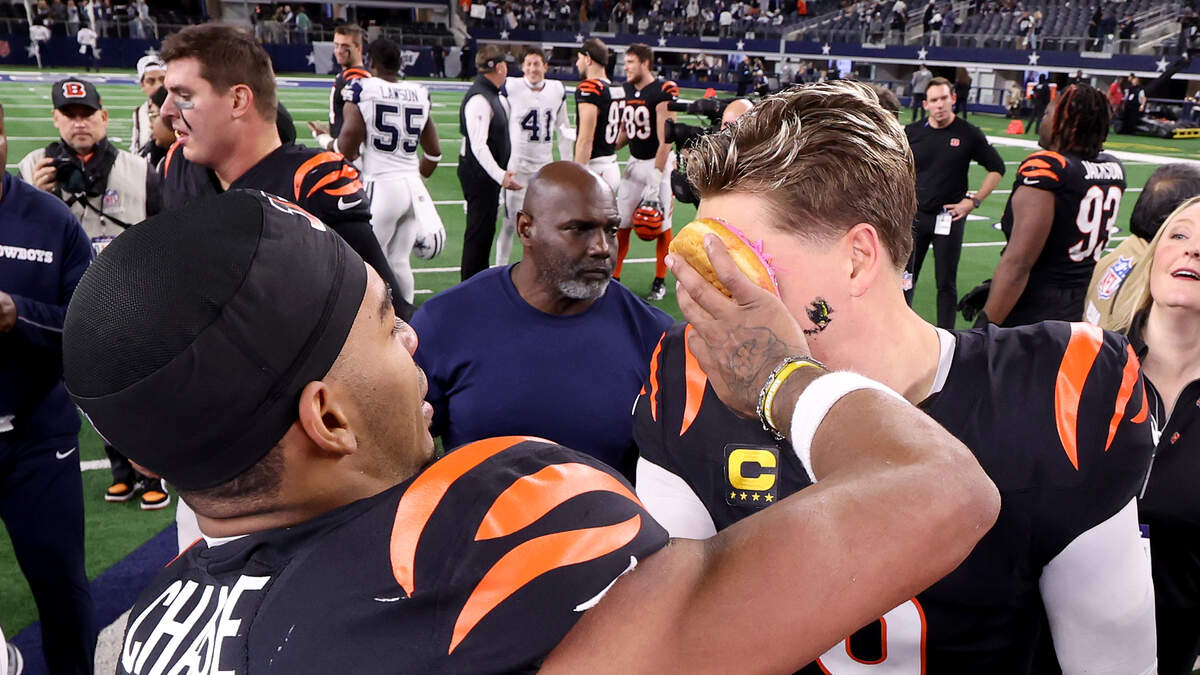 Ja'Marr Chase SMASHES a donut in Joe Burrow's FACE after win vs. Cowboys